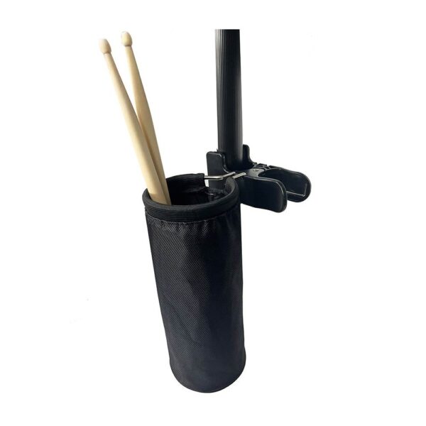 Het belangrijkste deel van de stokkenhouder is de zak. Die gemaakt is van duurzaam materiaal en voldoende ruimte biedt voor meerdere paar drumstokken. De zak is ontworpen om eenvoudig toegankelijk te zijn, zodat drummers snel hun stokken kunnen pakken of verwisselen wanneer nodig. De textiel-achtige zak voorkomt dat de stokken beschadigd raken of uit de houder vallen tijdens gebruik. Bovendien is het licht van gewicht en flexibel, wat bijdraagt aan het gebruiksgemak.