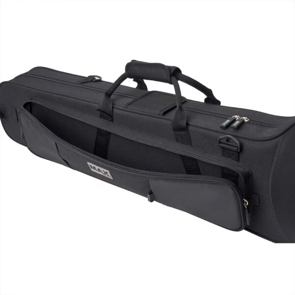 De MAX Trombone Koffer MX306CT-S biedt voldoende ruimte voor accessoires. Het grote voorvak met plooien is ideaal voor bladmuziek, onderhoudsproducten of kleine accessoires. Daarnaast is er een extra achtervak voor extra opbergruimte.