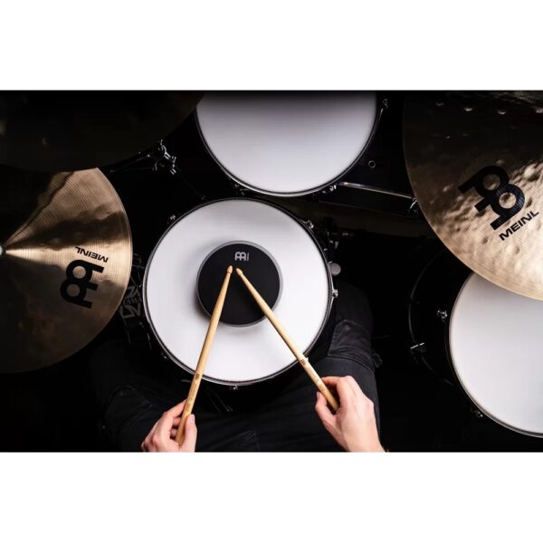 • De siliconenzijde geeft een realistisch speelgevoel dat vergelijkbaar is met een medium gespannen trommelvel. Dit oppervlak biedt voldoende rebound om nauwkeurigheid, snelheid en techniek te trainen, terwijl het geluidsniveau sterk gereduceerd blijft. Ideaal voor stille oefensessies, zelfs laat op de avond.